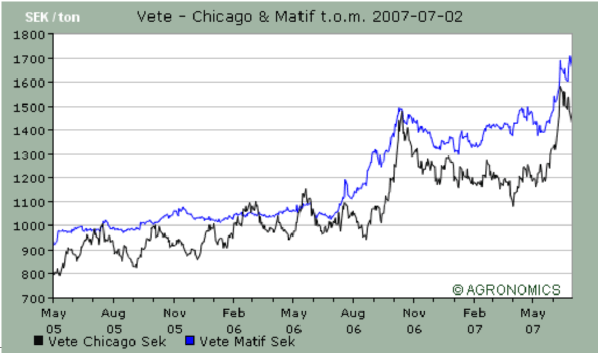 - Världsproduktionen av vete sänks i färsk prognos, källa IGC 070703